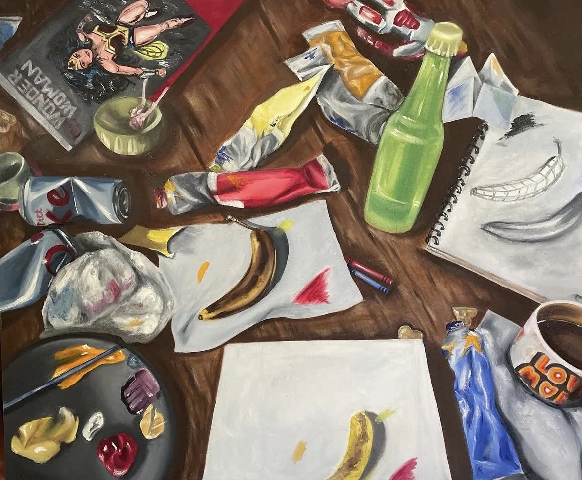 Hillary Hunt was born and raised in New Hampshire and currently resides in Connecticut with her husband, 3 kids, and 3 dogs. For 16 years she has worked as a professional makeup artist for Film, TV, and special events creating everything from zombies to brides on their most special day. Her work has gifted her both local and international opportunities she holds dear to her heart. Post-covid she decided she wanted to expand her love for the arts and hone her craft by pursuing a proper degree in visual fine arts. She has since taken classes at CT State Manchester to learn a variety of mediums from incredibly gifted professors. With Hillary's background in makeup for film she brings a unique perspective to her work, blending cinematic flair and bold colorful designs. Her art reflects her passion for storytelling capturing the essence of contemporary culture through vivid imagery.